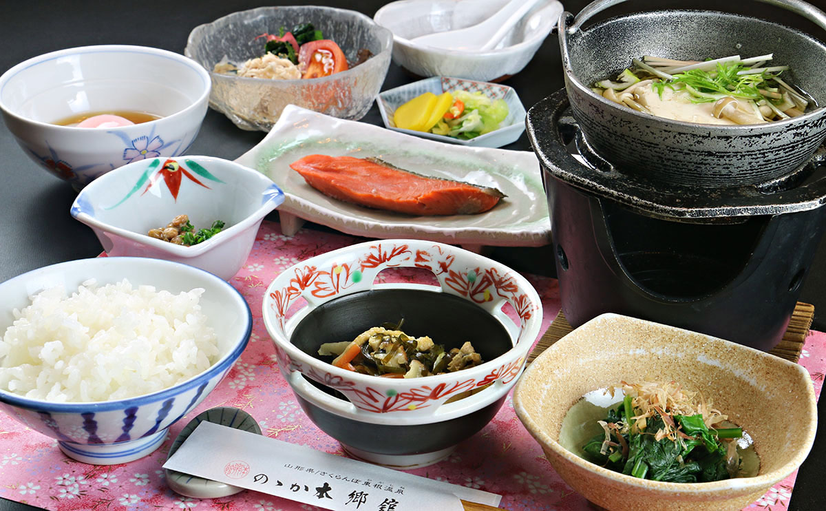 夕食には山形県ブランド米の「はえぬき」をご用意。