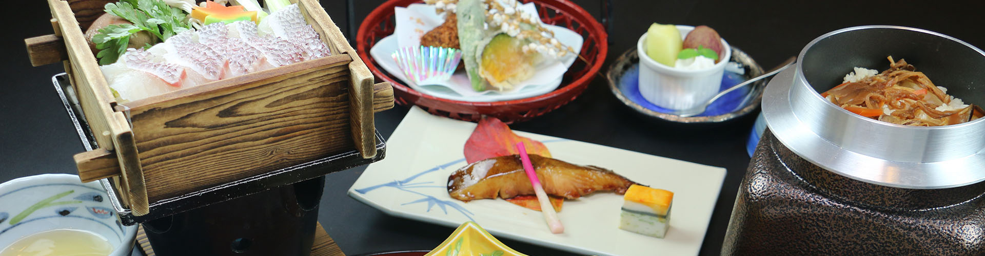 旬の食材や地の物をふんだんに使ったお料理です。料理は10品~11品お出しいたします。